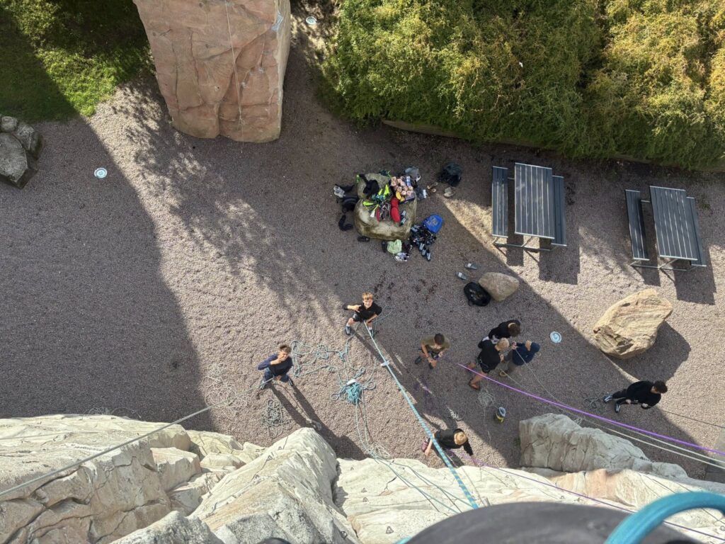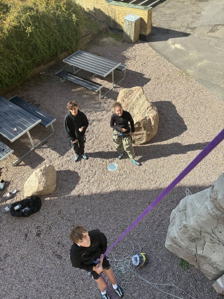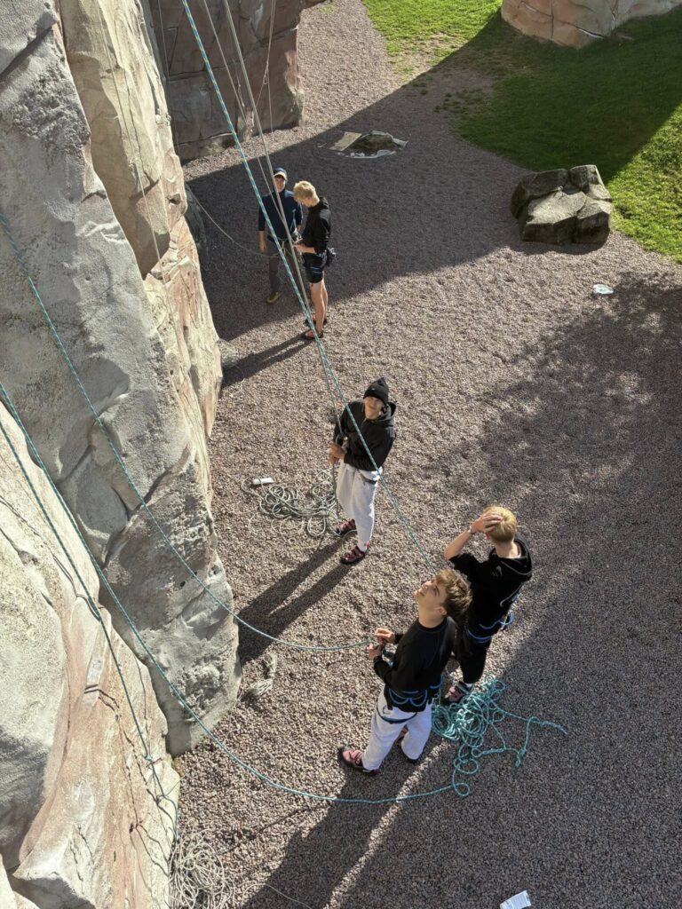 Klatreholdet tilbragte en aktiv og udfordrende fredag formiddag i Viborg, hvor de klatrede udendørs på de høje klatrevægge.