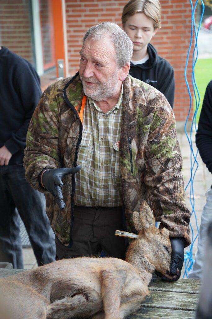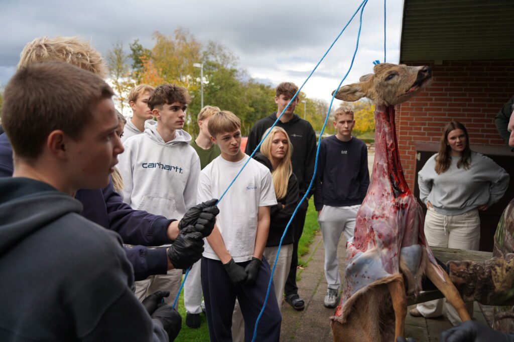 Eleverne lærte, hvordan man beskytter sig selv under arbejdet, f.eks. hvis dyret stadig kan sparke, og hvordan man håndterer eventuelle tæger i pelsen. De fik også indblik i, hvordan man flår dyret korrekt og udnytter hele dyret med respekt for naturen.