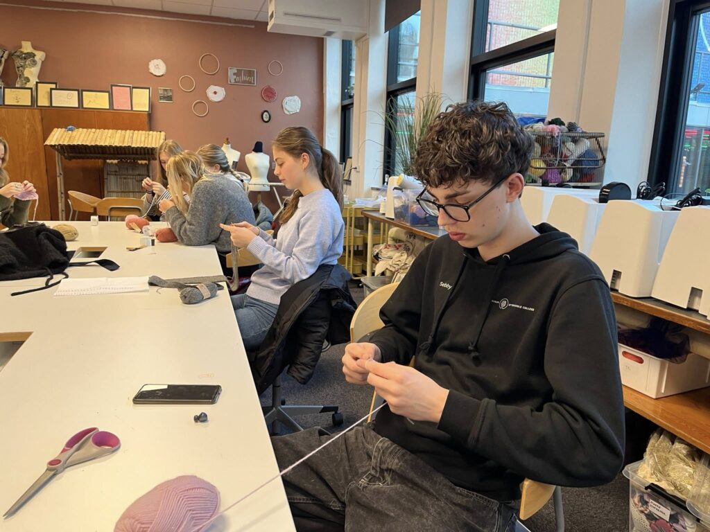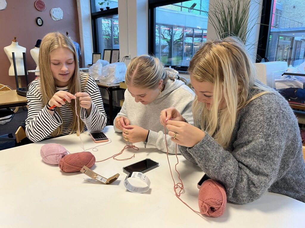 10+ Fashion har i de seneste uger kastet sig over strikning og hækling – med både indre ro og enkelte små frustrationer undervejs. Eleverne arbejder koncentreret, hjælper hinanden og griner, når maskerne driller. Resultatet er varme huer, halstørklæder og andre vinterklare kreationer, som nu er godt på vej.