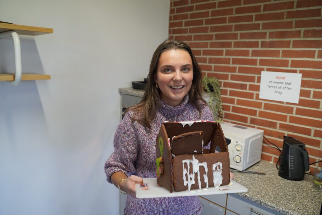 Holdet Gastronomi Skills har været i gang med at lave peberkagehuse. Eleverne har pyntet med kreativitet og øje for detaljerne, og resultatet er festligt. Selvom nogle huse ikke er helt storm sikre og et par enkelte mangler tage, så er det tydeligt, at både håndværk og fantasi har været i højsædet, og husene pynter nu smukt op i klassen.