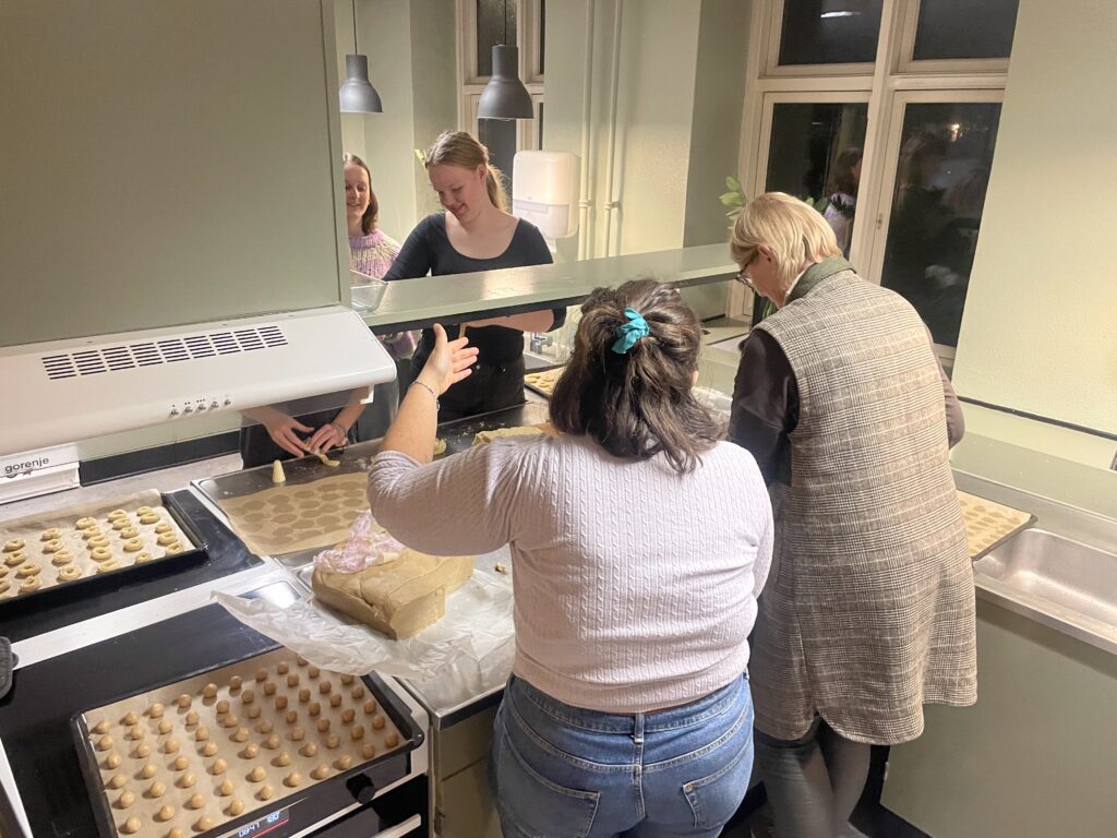 Der blev produceret både brunkager, pebernødder og vaniljekranse – og eleverne stod selv for alt fra bagning til levering.