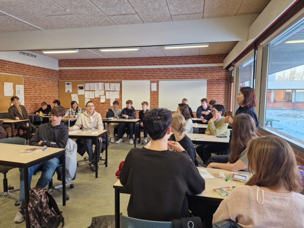 Vi havde mandag besøg af gæster fra Sydkorea, som var på Ranum Efterskole College for at undersøge mulighederne for udveksling og for at lære mere om det danske efterskolesystem. I løbet af dagen deltog de i den Sydkoreanske kulturfagsundervisning, hvor eleverne stillede nysgerrige og reflekterede spørgsmål. De spurgte om alt fra anbefalinger til oplevelser i Seoul til samtaler om den lave fertilitetsrate i Sydkorea og præstationspres i det koreanske skolesystem. Et super givende besøg, der kun gør elevernes nysgerrighed på landet endnu større.