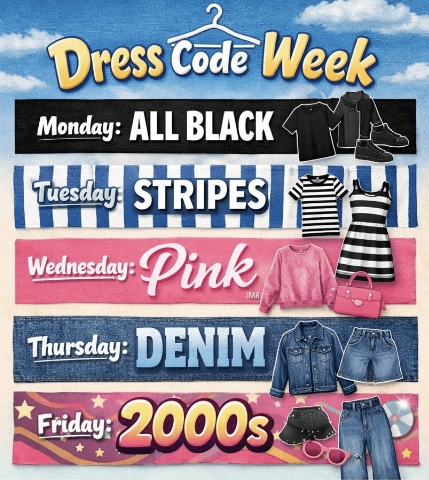 Midt i det barske vintervejr er der alligevel smil og glæde hos de fleste elever. Vi har haft Fashion Week med dresscode, og selvom nogle glemmer det, er rigtig mange elever og ansatte med på legen: sort-mandag, stribet-tirsdag, pink-onsdag (her var drengene noget udfordrede), denim-torsdag og 00’er-fredag. Legen skaber fællesskab og udfordrer samtidig det individuelle valg: Man kan vælge at deltage eller ignorere legen. Går man med, investerer man måske lidt “street-credit” og risikerer at miste en smule af sig selv (pink var umuligt for forstanderen), men man kan også vinde meget – både i legen og sammen med andre – ved at turde vise, at man tør gå med.