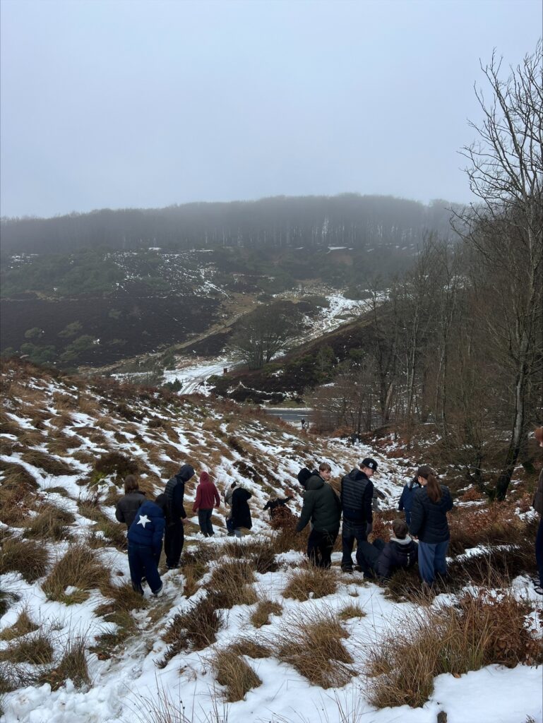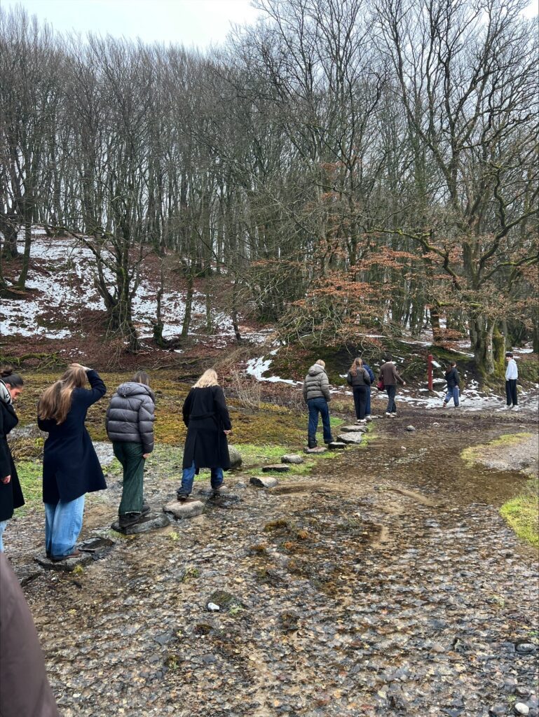 Heldigvis vendte gåpåmodet hurtigt tilbage, da vi ankom til bakkerne og snørede vandrestøvlerne. Her blev der virkelig taget fat. Eleverne viste stort overskud og kæmpede sig gennem mudderglatte skråninger, hvor balancen blev testet (næsten til det yderste), samtidig med at de nød den smukke natur – også selvom vejret bød på et par dryp fra oven.
