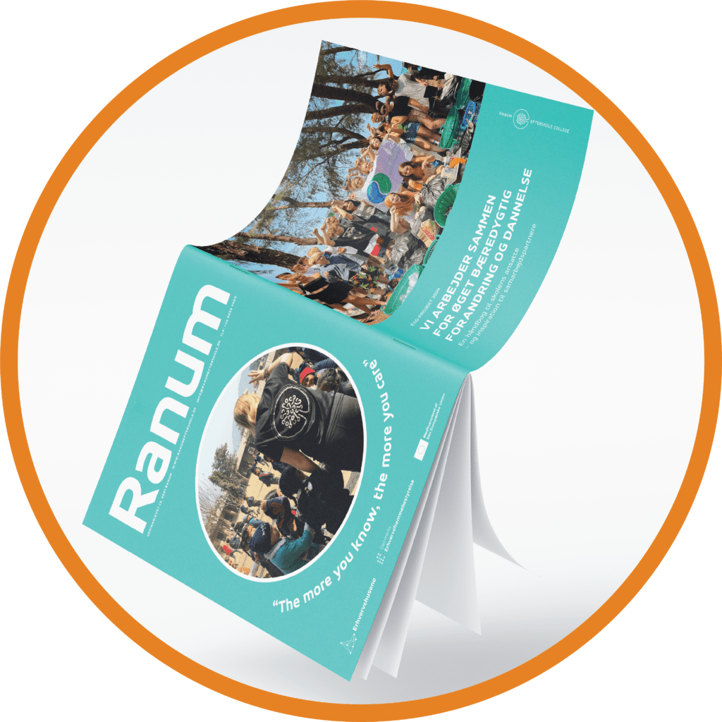 No Ranum Efterskole College without the 'D' for education. At REC, we see good education as our most important task and as the finest gift we can give our students to take with them in life. We travel, work and teach based on the motto 'The more you know - the more you care'. And the world needs us to care - young and old - which is why we want to work even more with responsibility, climate and sustainability. As with everything else, our approach to ESG is explorative because we find that it makes sense to use actively on a efterskole.