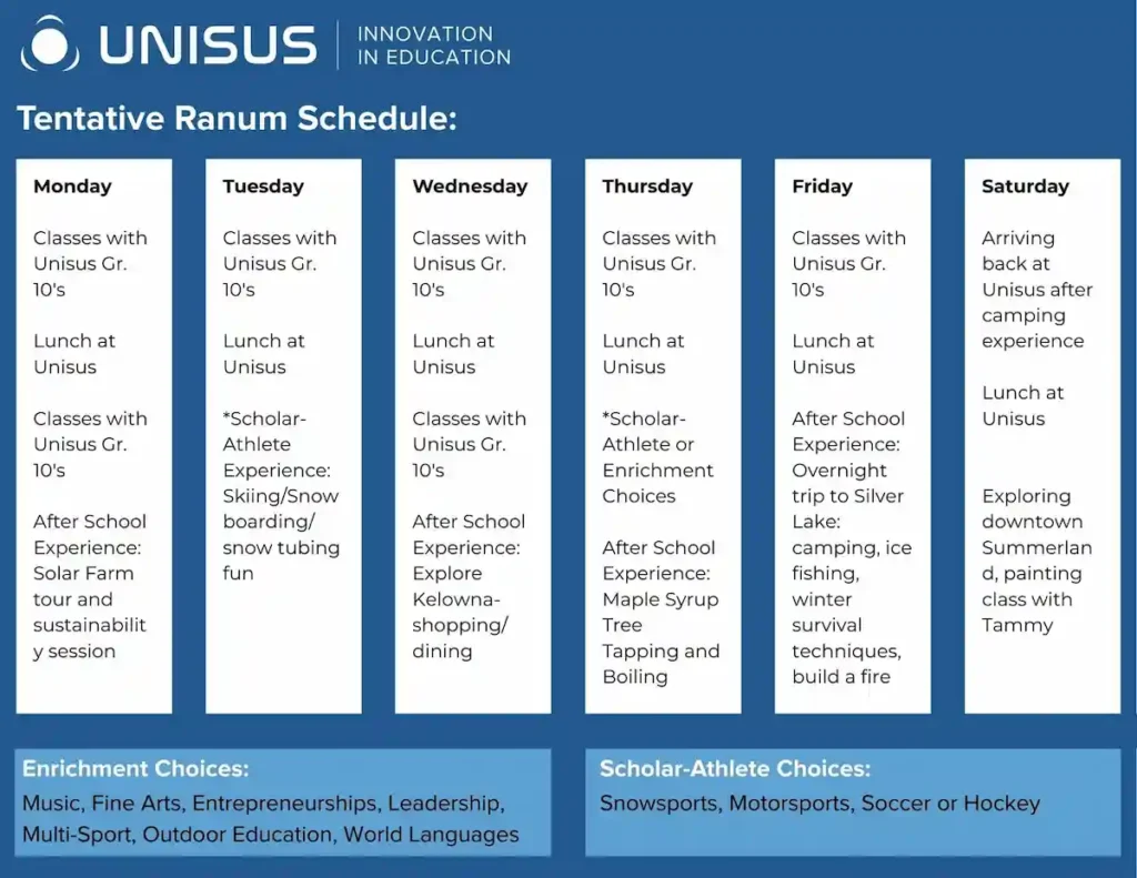 A unique opportunity to be a student at a Canadian international day and boarding school for a week and learn about Canadian culture and heritage. We will visit our partner school Unisus, which is beautifully located in the valley around Summerland - surrounded by mountains, lakes and orchards. We will stay at the school, follow the daily schedule and participate with the Canadian students in various activities - both inside and outside the school.